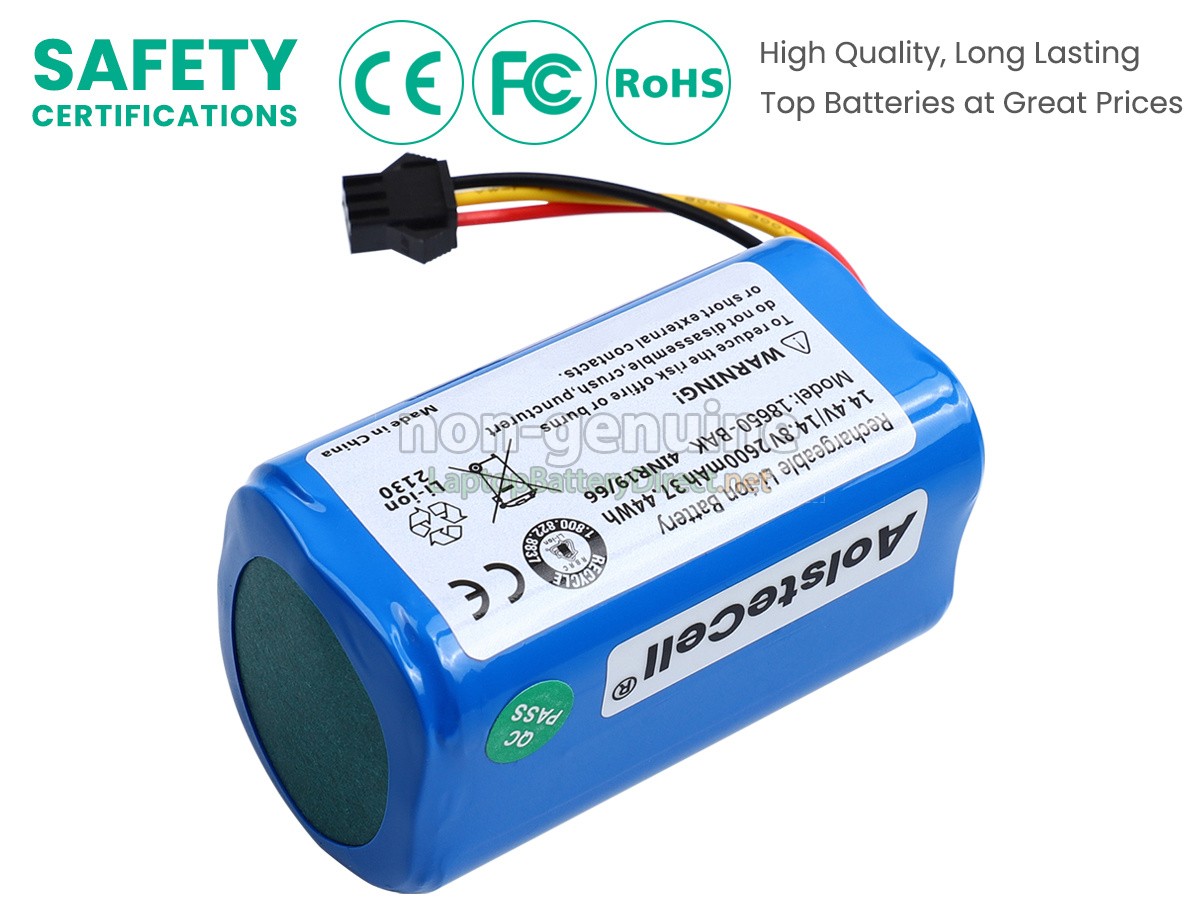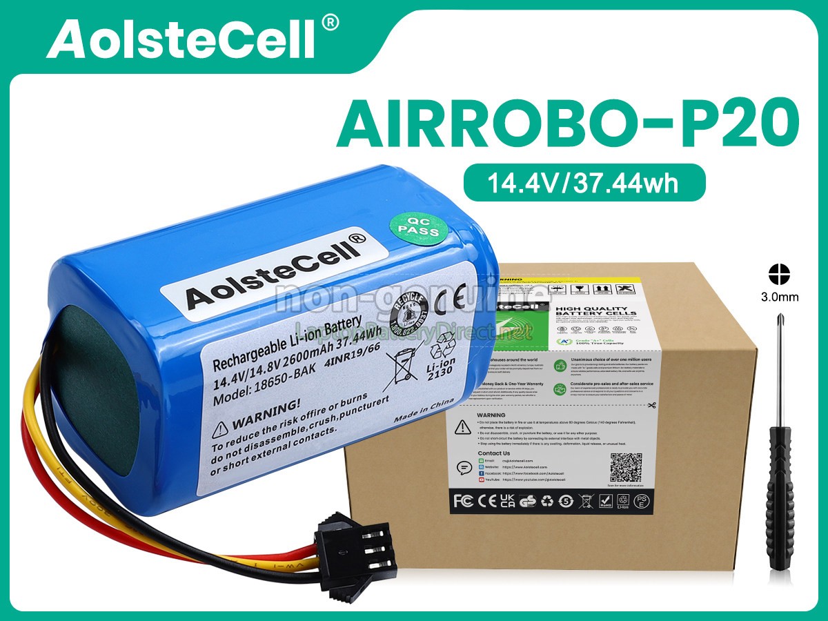 The 14.4V 2600mAh(4 cells) Airrobo P30 battery is made of high-quality lithium-ion battery cells, which has been tested to be brand new and totally compatible with the original manufacturer specifications, meets or even exceeds the original battery performance. With high-quality battery cells and materials, your cordless vacuum cleaner will run longer and more secure. Moreover, this battery has no "memory effect" and you don’t need to discharge before each charge. It is more convenient for you to use our replacement Airrobo P30 batteries.Our Airrobo P30 cordless vacuum cleaner battery which we design is in strict accordance with the highest control standards. It carries with a smart interior circuit board that provides battery-unbalanced-shut-off protection, thermal runaway protection, overcharged protection, over-discharged-shut-off protection, and high/low-temperature-shut-off protection. Airrobo P30 vacuum cleaner battery is made of environmentally friendly materials, without lead and mercury. It is certified as a safe and reliable product through a series of rigorous tests on the Airrobo examine system.