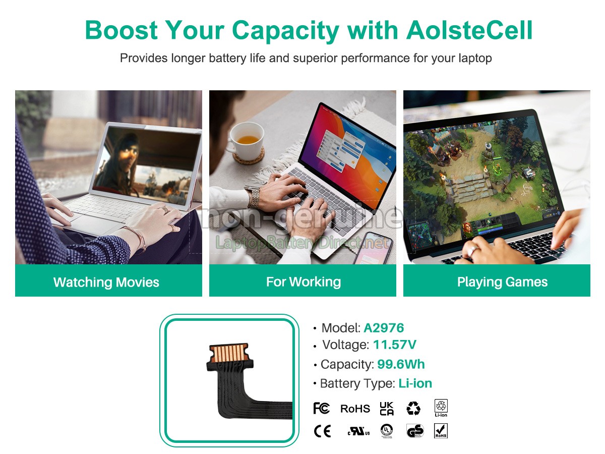 30 Day Money Back Guarantee if you are not satisfied with our Apple A2976 notebook battery. We will check all functions of our all products before delivery.