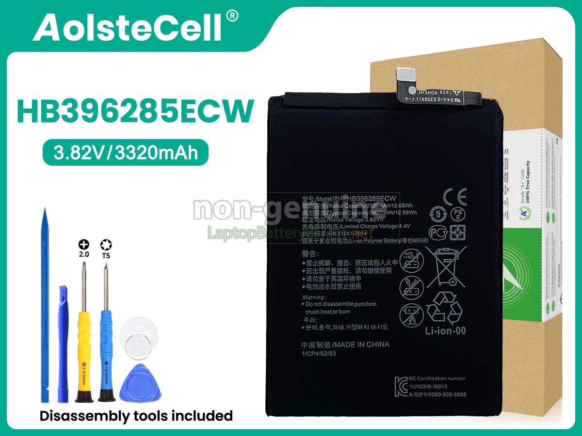 The 3.82V 3320mAh(1 cells) Huawei HB396285ECW battery is made of high-quality lithium-ion battery cells, which has been tested to be brand new and totally compatible with the original manufacturer specifications, meets or even exceeds the original battery performance. With high-quality battery cells and materials, your equipment will run longer and more secure. Moreover, this battery has no "memory effect" and you don’t need to discharge before each charge. It is more convenient for you to use our replacement Huawei HB396285ECW batteries.Our Huawei HB396285ECW battery which we design is in strict accordance with the highest control standards. It carries with a smart interior circuit board that provides battery-unbalanced-shut-off protection, thermal runaway protection, overcharged protection, over-discharged-shut-off protection, and high/low-temperature-shut-off protection. Huawei HB396285ECW battery is made of environmentally friendly materials, without lead and mercury. It is certified as a safe and reliable product through a series of rigorous tests on the Huawei examine system.