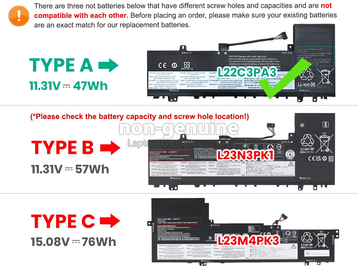 A: First of all, you need to assure the model of your laptop or the part number of your laptop battery. Then look for the battery you need at laptopbatterydirect.net. Finally, you can check whether the battery you find is compatible with your laptop or not on the "Compatibility" table (for example, Lenovo IdeaPad SLIM 5 16AHP9-83DD002HPB). If you don't know how to find the right battery for your laptop, you can click How to find one correct battery for my laptop? for more details. Moreover, you can click the icon "Live Chat" on the right of this page to ask us.