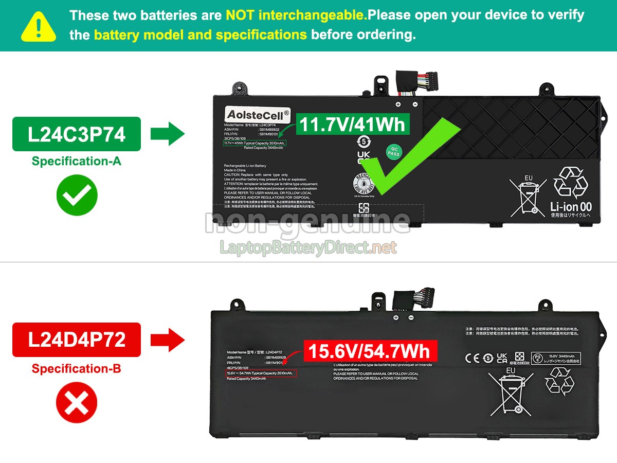 A: First of all, you need to assure the model of your laptop or the part number of your laptop battery. Then look for the battery you need at laptopbatterydirect.net. Finally, you can check whether the battery you find is compatible with your laptop or not on the "Compatibility" table (for example, Lenovo ThinkPad L13 2-IN-1 GEN 6-21R7000XED). If you don't know how to find the right battery for your laptop, you can click How to find one correct battery for my laptop? for more details. Moreover, you can click the icon "Live Chat" on the right of this page to ask us.