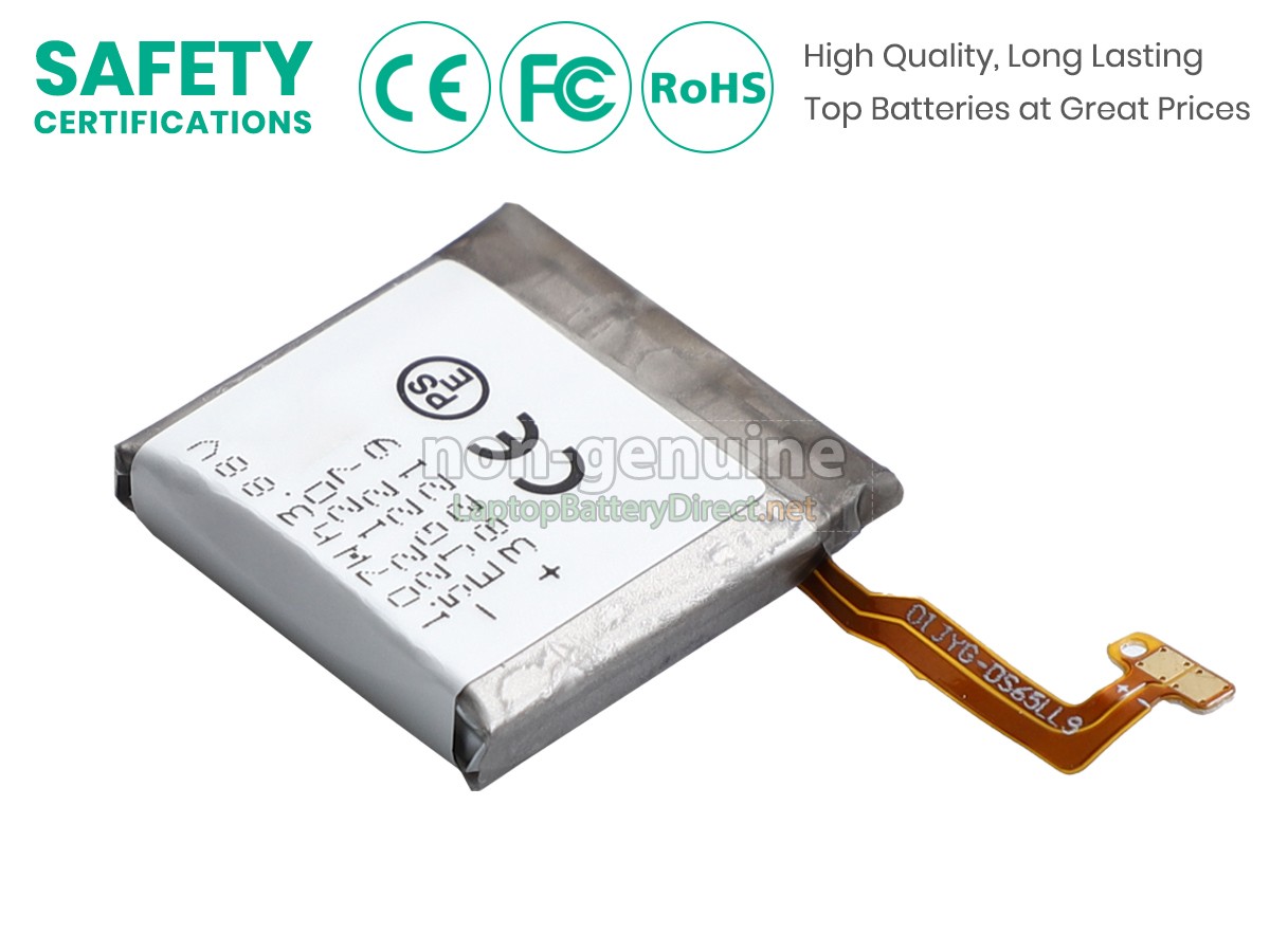 The 3.88v 1.07Wh(1 cells) Samsung GALAXY WATCH 5 40MM battery is made of high-quality lithium-ion battery cells, which has been tested to be brand new and totally compatible with the original manufacturer specifications, meets or even exceeds the original battery performance. With high-quality battery cells and materials, your smartwatch will run longer and more secure. Moreover, this battery has no "memory effect" and you don’t need to discharge before each charge. It is more convenient for you to use our replacement Samsung GALAXY WATCH 5 40MM batteries.Our Samsung GALAXY WATCH 5 40MM watch battery which we design is in strict accordance with the highest control standards. It carries with a smart interior circuit board that provides battery-unbalanced-shut-off protection, thermal runaway protection, overcharged protection, over-discharged-shut-off protection, and high/low-temperature-shut-off protection. Samsung GALAXY WATCH 5 40MM smartwatch battery is made of environmentally friendly materials, without lead and mercury. It is certified as a safe and reliable product through a series of rigorous tests on the Samsung examine system.