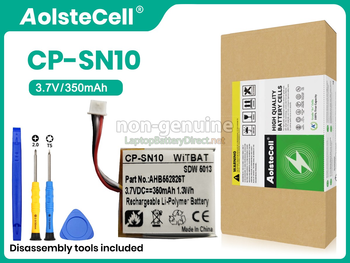 The 3.7V 350mAh(1 cells) Sennheiser CP-SN10 battery is made of high-quality lithium-ion battery cells, which has been tested to be brand new and totally compatible with the original manufacturer specifications, meets or even exceeds the original battery performance. With high-quality battery cells and materials, your equipment will run longer and more secure. Moreover, this battery has no "memory effect" and you don’t need to discharge before each charge. It is more convenient for you to use our replacement Sennheiser CP-SN10 batteries.Our Sennheiser CP-SN10 battery which we design is in strict accordance with the highest control standards. It carries with a smart interior circuit board that provides battery-unbalanced-shut-off protection, thermal runaway protection, overcharged protection, over-discharged-shut-off protection, and high/low-temperature-shut-off protection. Sennheiser CP-SN10 battery is made of environmentally friendly materials, without lead and mercury. It is certified as a safe and reliable product through a series of rigorous tests on the Sennheiser examine system.